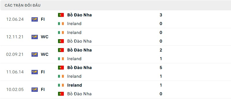 Phong độ của Bồ Đào Nha vs Ireland gần đây