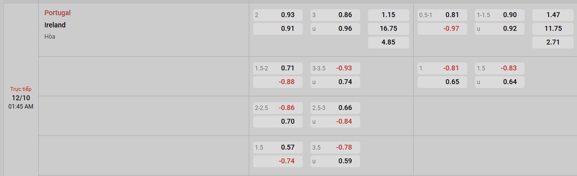 Soi kèo Bồ Đào Nha vs Ireland qua tỷ lệ