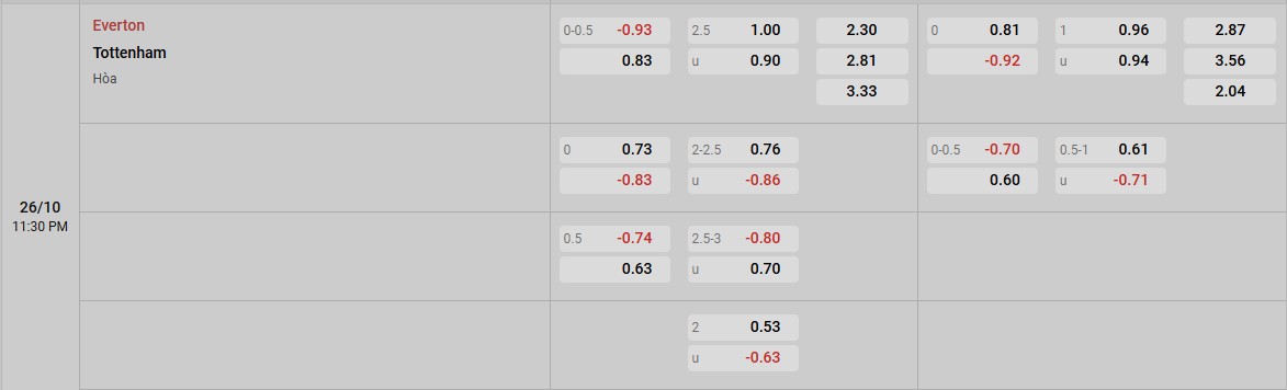Soi kèo Everton vs Tottenham qua tỷ lệ
