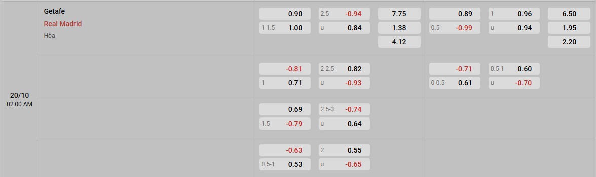 Soi kèo Getafe vs Real Madrid qua tỷ lệ