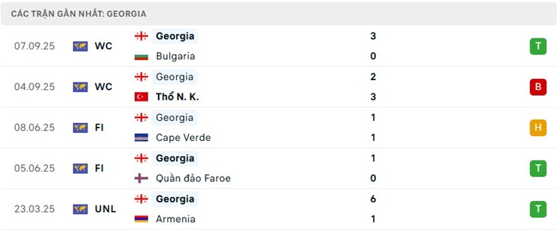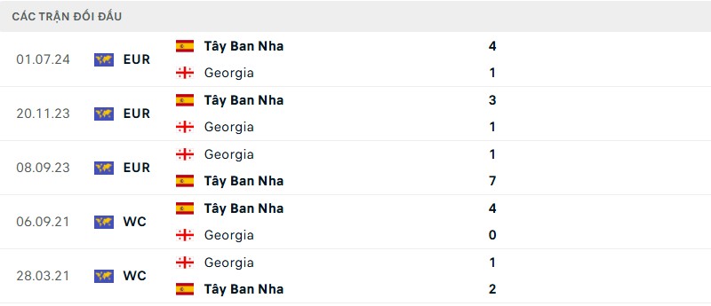 Thành tích đối đầu giữa Tây Ban Nha với Georgia