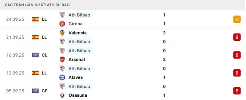Về phía Athletic Bilbao, sau khởi đầu như mơ với 3 chiến thắng liên tiếp trước Sevilla, Rayo Vallecano và Real Betis, họ bất ngờ chững lại. Chấn thương của Nico Williams ảnh hưởng không nhỏ đến khả năng tấn công biên của Bilbao, trong khi Dani Vivian lĩnh thẻ đỏ khiến hàng thủ thêm khủng hoảng.