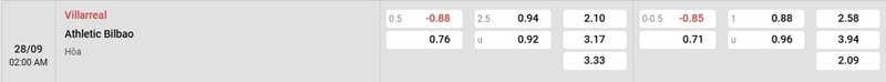 Soi kèo Villarreal vs Bilbao, 02h00 ngày 28/09/2025: Trận cầu 6 điểm